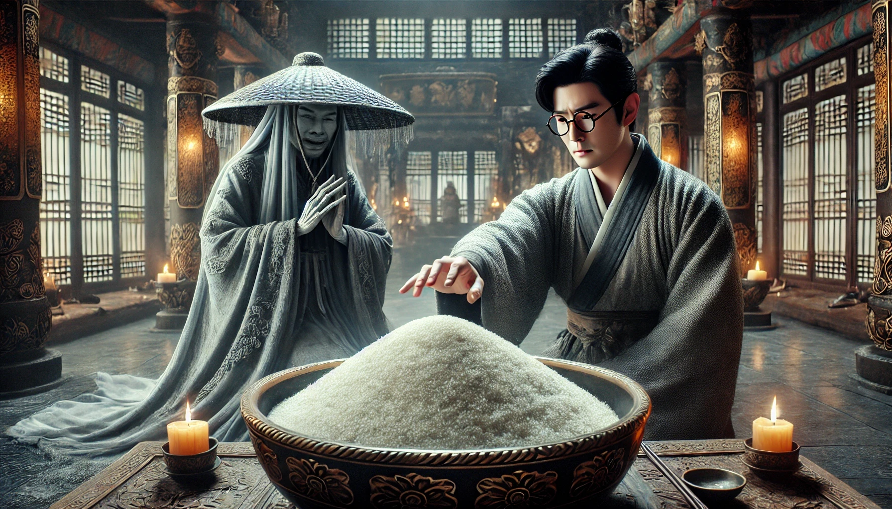 그러면서 사자는 마지막으로 이 아이를 찾는다. 눈앞에서 아이영혼이 사라졌기 때문이다. 법단에 불기에 쌀을 가득 담아두고 그 위에 아이 어머니로 하여금 향을 피워 꽂아두게 했다. 그런데 그 쌀을 막 헤치면서 아이영혼을 찾았다. 아이를 그 속에 숨겨둔 것으로 생각했던 것이다. 그러나 쌀 속에 아이가 없자 일단 주저앉는다. 이것은 사자가 한 번은 아이를 찾아 헛방질하게 해 봐야 포기하지, 아니면 끝까지 찾으면서 포기하지 않을 것임을 알기에 미리 아이영혼을 쌀 속에 숨겨두었다고 여기게 해서 헛수고를 해 포기하게 만들려는 내 작전이었는데 사자가 그대로 걸려든 것이다. 이런 것을 주술이라고 부른다.