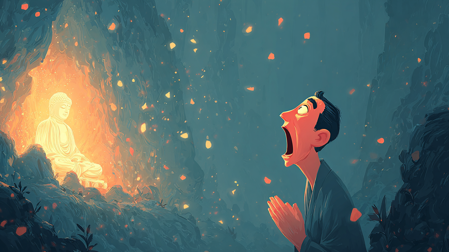 천도재 중 아미타불의 찬란한 광명을 보자마자, 감격하여 큰소리로 내뱉은 말이다.
